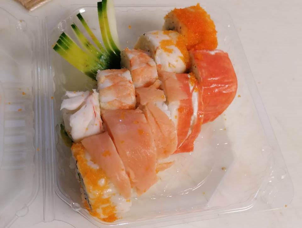 | POR FUERA CAMARÓN, AGUACATE Y MARISCO, ADENTRO PASTA DE CANGREJO, QUESO PHILADELPHIA Y PEPINO | ||